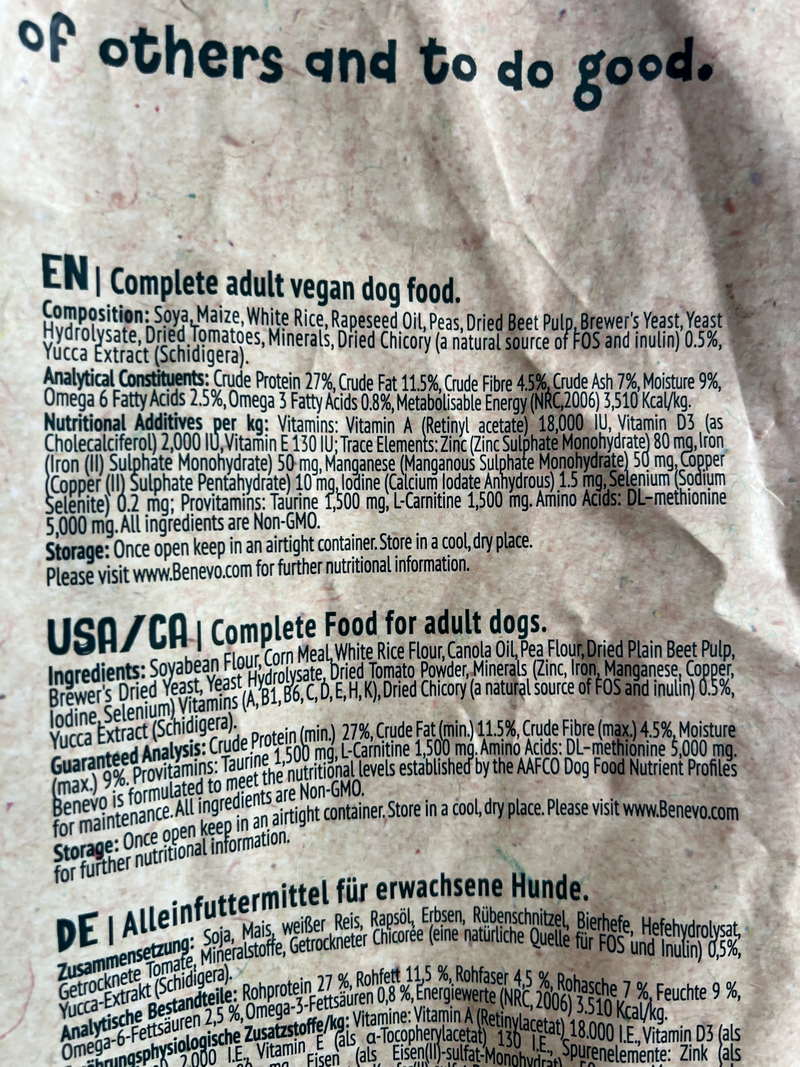Повноцінний веганський сухий корм для дорослих собак, створений британським брендом Benevo з понад 15-річним досвідом у рослинному харчуванні тварин. Формула містить рослинні білки, таурин, L-карнітин, омега-3 і омега-6 жирні кислоти та вітаміни групи B, що підтримують енергію, серце, імунітет, здоров’я шкіри та блиск шерсті. Легко засвоюється, підходить для чутливих собак. Збалансований рослинний раціон сприяє довголіттю та гарному самопочуттю. Етичний вибір — доставка по Україні від першого в Україні веганського зоомагазину Vegan Friends!