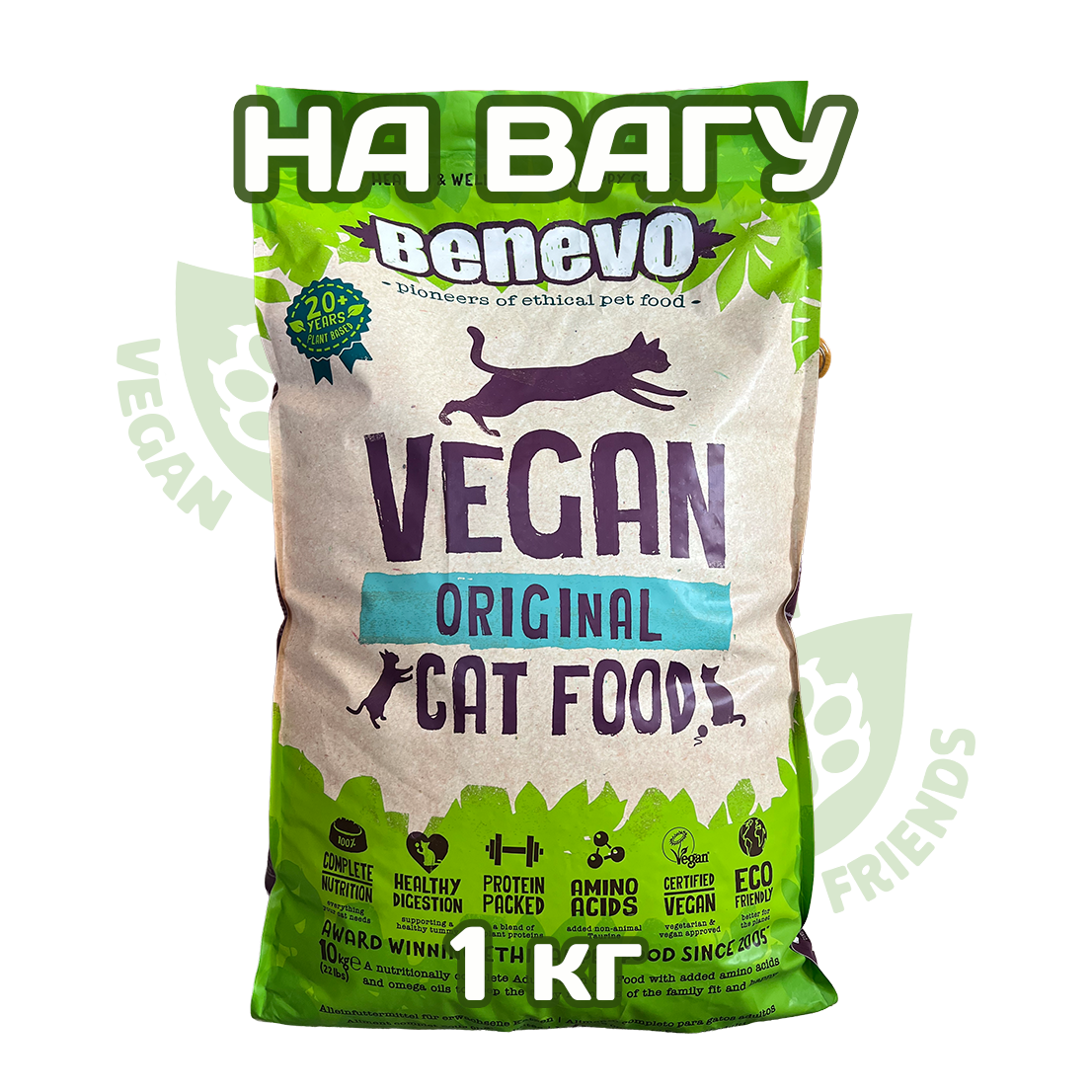 Benevo Original Cat Food — повноцінний веганський сухий корм для дорослих котів від британського бренду Benevo з понад 20-річним досвідом виробництва cruelty-free харчування. Рецепт з високим вмістом рослинного білка (28%), таурином та спіруліною підтримує м’язову масу, серцево-судинну систему та імунітет. Без пшениці, ГМО та штучних добавок — легкий для травлення. Збалансований рослинний раціон Benevo позитивно впливає на здоров’я котів, даруючи блискучу шерсть, енергію та довге активне життя. Замовляйте в нашому онлайн-зоомагазині веганських кормів з доставкою по всій Україні!