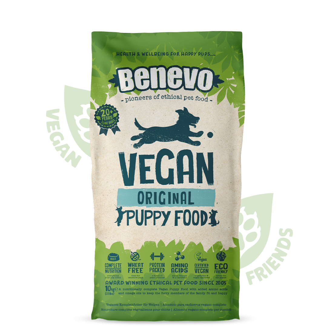 Benevo Original Vegan Puppy Food – Повнораціонний веганський сухий корм для цуценят від британського бренду Benevo (з 2012 року спеціалізується на рослинному харчуванні). Збагачений кальцієм, вітамінами та мінералами для правильного росту кісток і м’язів, пребіотиками для травлення та юккою для зменшення запаху. Високий рівень рослинного білка підтримує активний розвиток. Рослинний раціон Benevo з багаторічним досвідом позитивно впливає на здоров’я цуценят, забезпечуючи енергію, міцний імунітет та гармонійний ріст. Не є кормом для дорослих собак — обирайте також Ami Dogs або Benevo Original Dog.