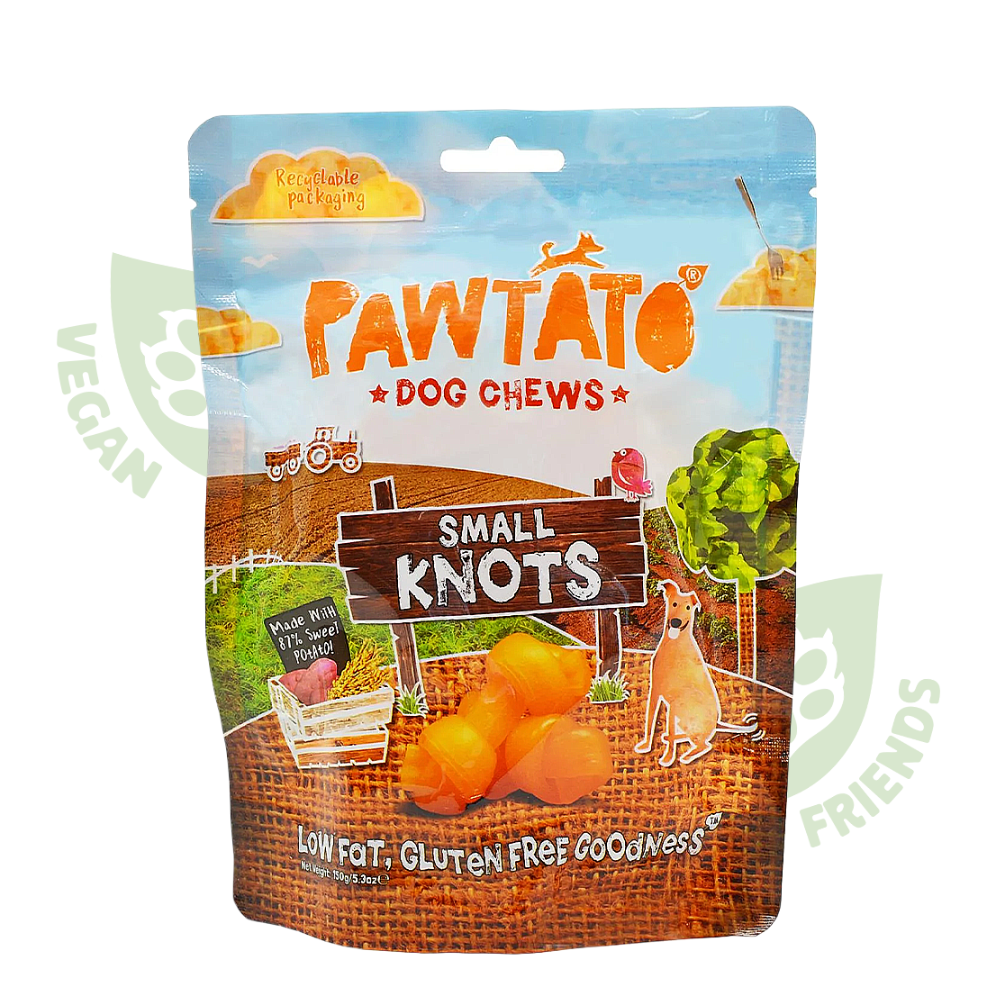 Pawtato DC Small Knots — веганські вузлики для маленьких собак з 87% солодкої картоплі та рису. Гіпоалергенні, низькожирні, багаті на фітоелементи, вітаміни та мінерали для здоров’я шкіри, шерсті та травлення.